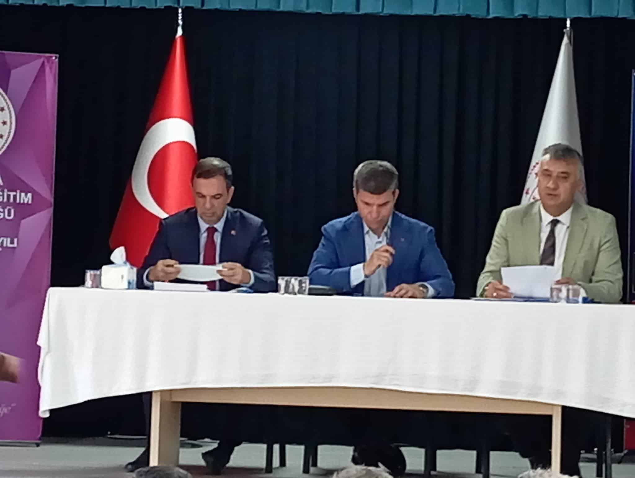 Valimiz Sayın Önder BAKAN başkanlığında İl Milli Eğitim Müdürümüz Mehmet Ali KATİPOĞLU, Kaymakamımız Şafak GÜRÇAM ve İlçe Milli Eğitim Müdürümüz Ahmet DAVU'nun dakatılım sağladığı 2025-2026 Yeni Eğitim-Öğretim Yılı öncesi, okulların genel durumu, güvenliği ve devam eden hazırlıkların gözden geçirildiği toplantı gerçekleştirildi. Toplantıya İlçemizdeki okul ve kurum müdürlerimiz ve kurum amirleri katıldı.
